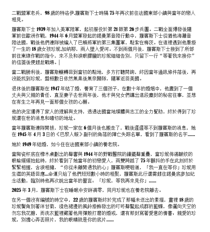 沒有戰火 沒有失散的車站與信件